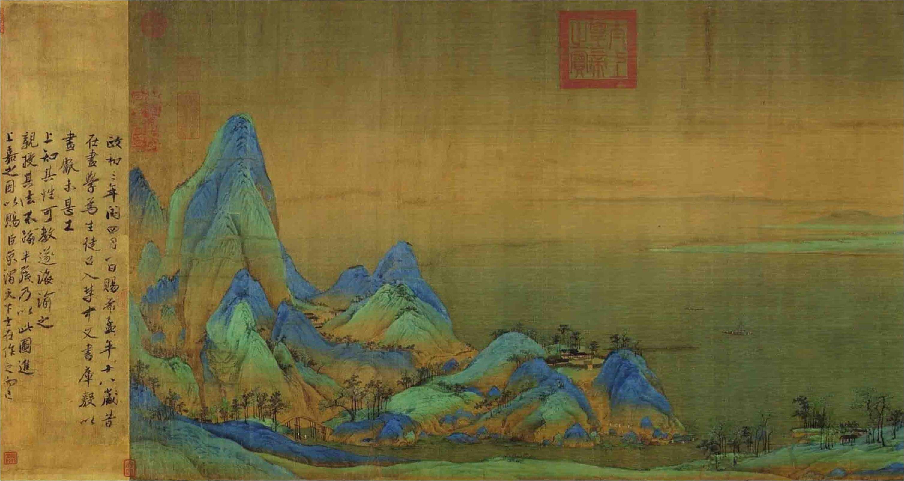 对中国地理大势首次做出概括的,是成文于周秦之际的《禹贡》,该文提出华夏族的“四至”观:“东渐于海,西被于流沙,朔南暨声教,讫于四海。”图为宋代王希孟《千里江山图》(局部)。