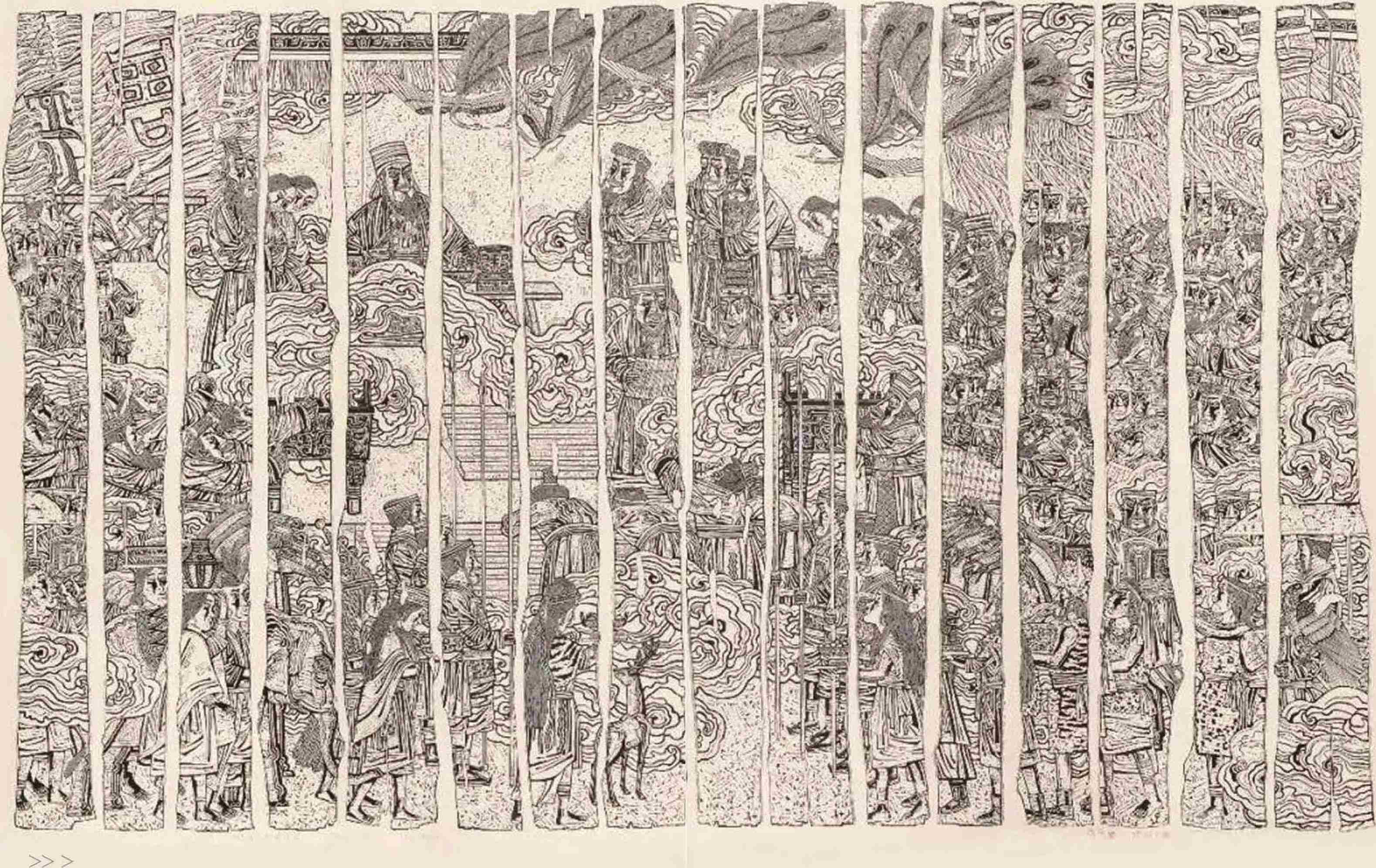 中国社会组织的特色,与宗法制延绵不绝紧密相连的,是专制政体的长期持续。早在国家初成的商周时代,君主专制便现端倪。图为当代康宁、付继红、臧亮《周天子分封诸侯图》。