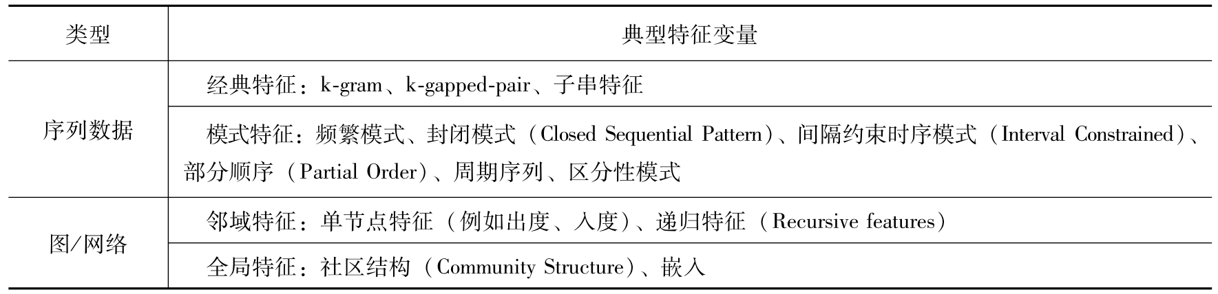 2)频繁模式:把频繁模式作为特征,根据频繁分析结果,对频繁模式项是否出现、频繁模式项编码等特征量进行加工。