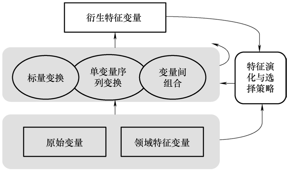 特征工程包括特征提取、特征选择两项工作。特征提取指的是手工或自动将原始变量转换为一组有业务/统计意义的特征变量;特征选择是从特征变量集合中挑选一组与分析问题相关的特征子集,达到降维的效果。本节重点讨论自动特征提取算法,包括针对特定数据类型(时序、序列、文本、图像等)的自动特征提取、根据实体(数据框)间的关联关系[如基数(cardinality)]的自动特征提取,以及多个变量间的组合运算。