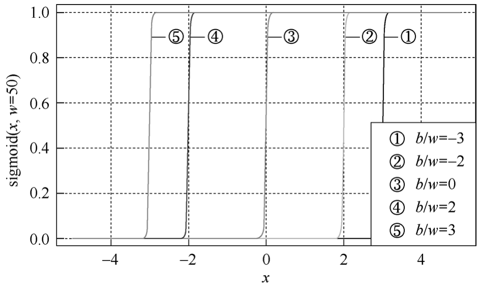 图3-23 不同 b/w 下,sigmoid函数的形状
