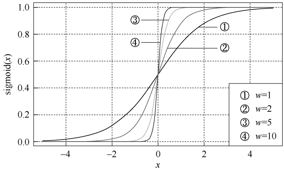 图3-22 不同权重系数下,sigmoid函数的形状