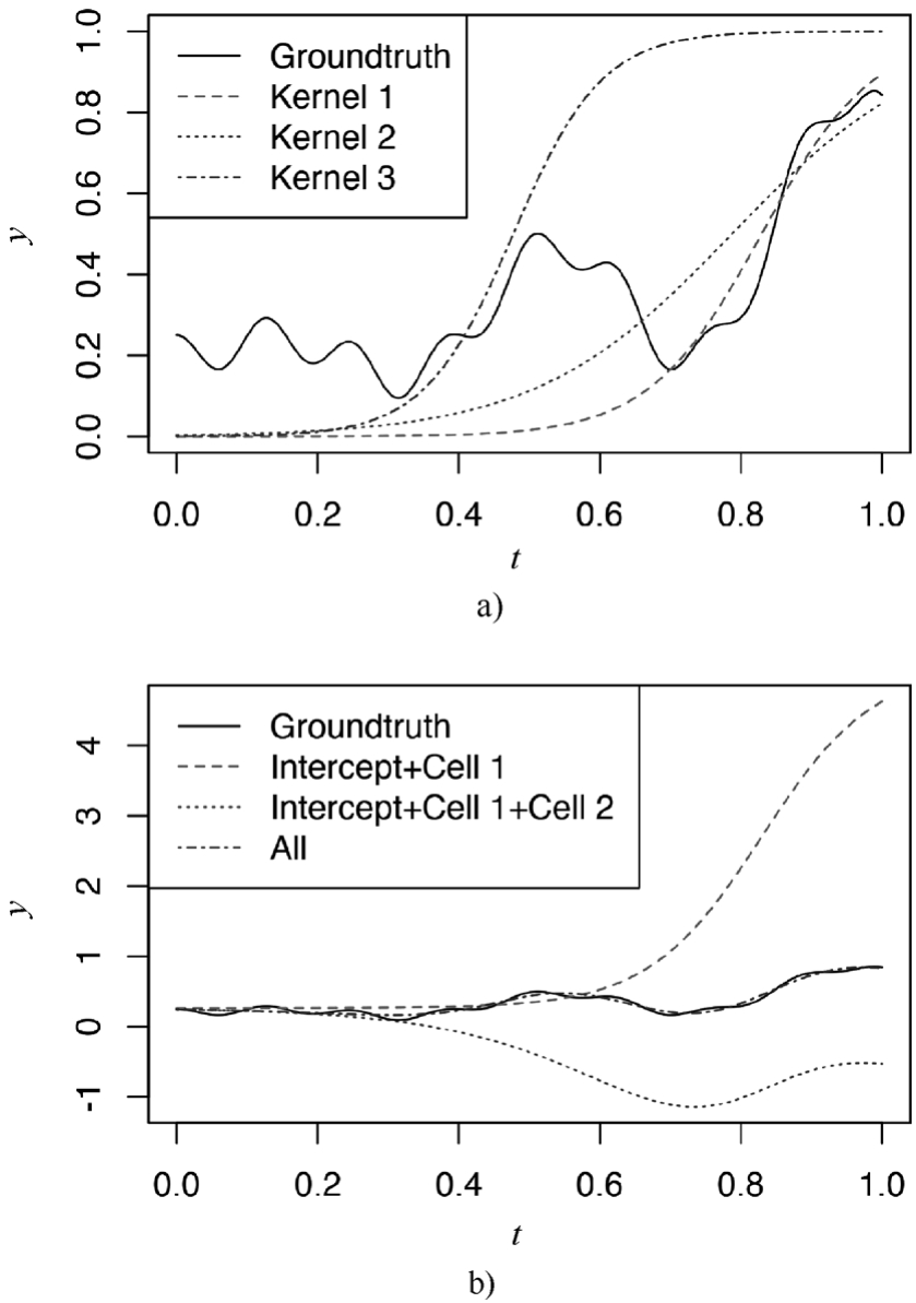 GAM(Generalized Additive Model,广义加性模型)作为半参数方法,拟合能力比较强。将ELM的拟合结果与GAM(采用高斯过程)对比,可以看出ELM的拟合结果与GAM相差不多,如下述代码和图3-29所示。