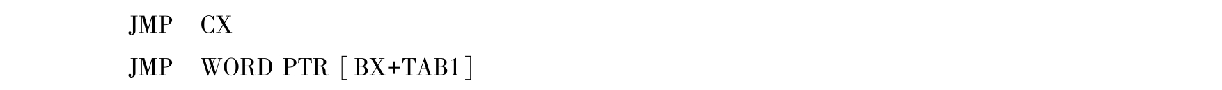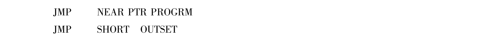 其中,PROGRM和OUTSET均为转向目的地的符号地址,在机器指令中,用位移量来表示。在汇编指令中,如果位移量为16位,则在符号地址前加运算符NEAR PTR;如果位移量为8位,则在符号地址前加运算符SHORT。