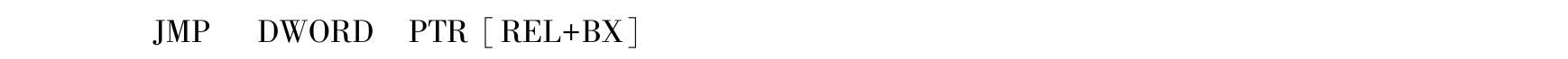 其中,[REL+BX]说明数据寻址方式为寄存器相对寻址方式,DWORD PTR为双字属性运算符,说明转移的目标地址需取双字内容为段间转移指令所需的段基址与偏移地址。