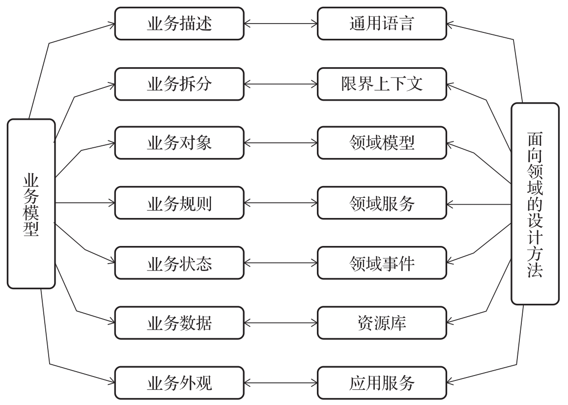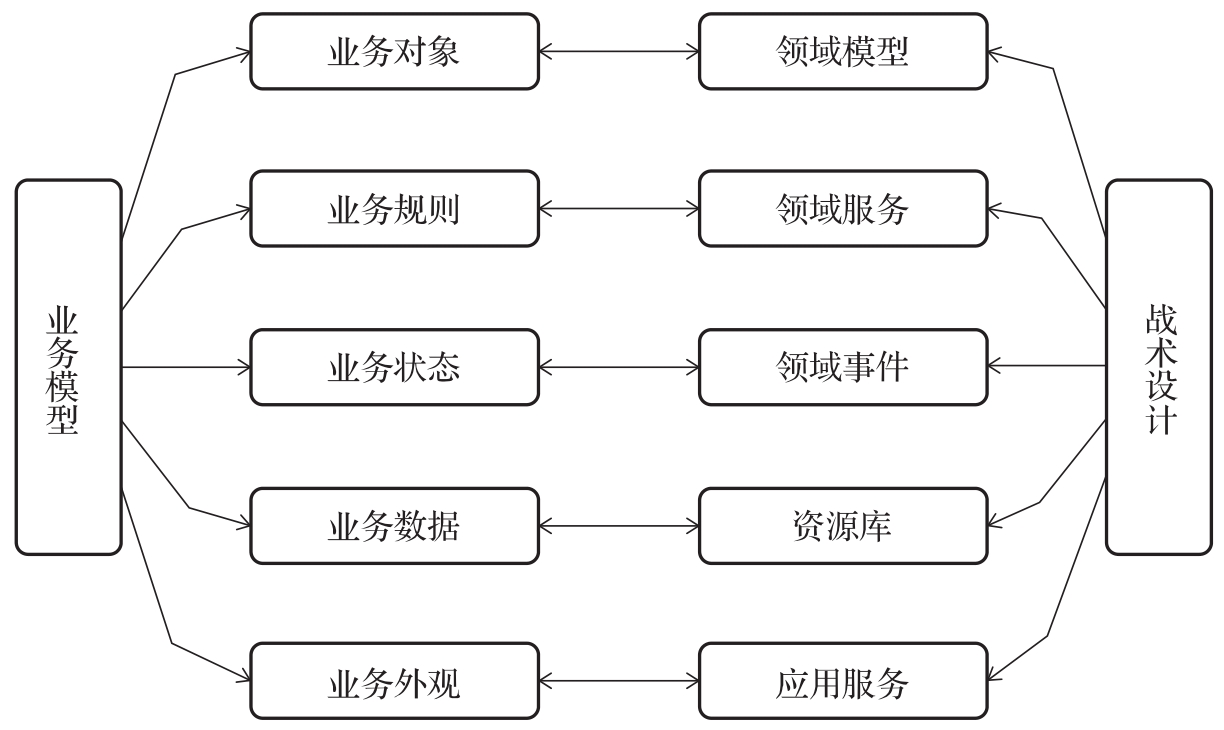 图1-6 面向领域的战术设计与业务模型维度之间的映射关系