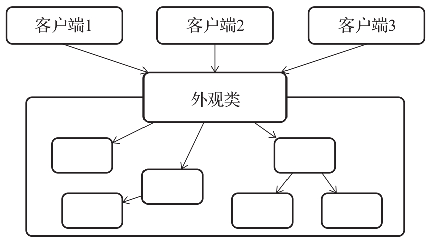 对于外观模式,其设计意图在于为系统中的一组接口提供一个一致的界面,从而使得这一系统更加容易使用。在实现上,与系统发生直接耦合的不是用户界面,而是外观类。在分层架构中,可以使用这一模式定义系统中每一层的入口。外观模式的结构示意图如图1-11所示。