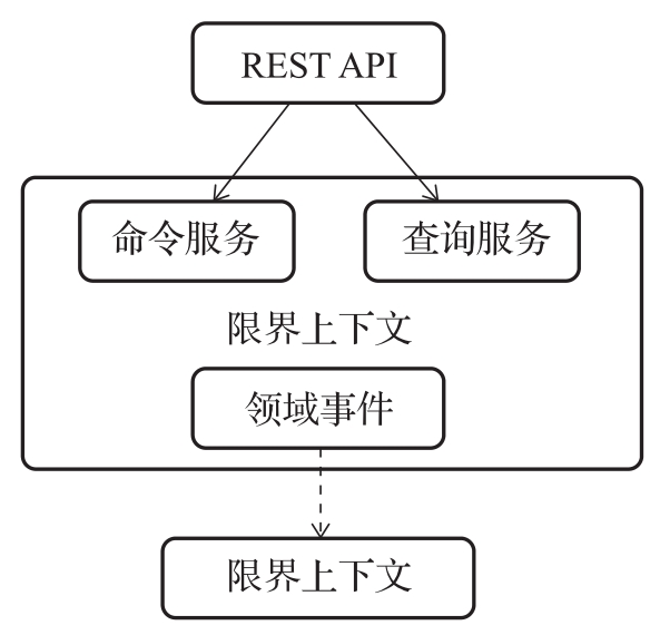 在DDD中,查询服务的定位很明确,就是用来获取限界上下文当前状态的。在命令服务和领域事件的基础上,我们把查询服务也添加到限界上下文中,如图3-23所示。