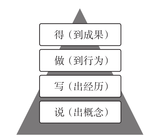 课程目标的行为四动词法非常简单,概括起来就是4个字:说、写、做、得(见图1-2)。
