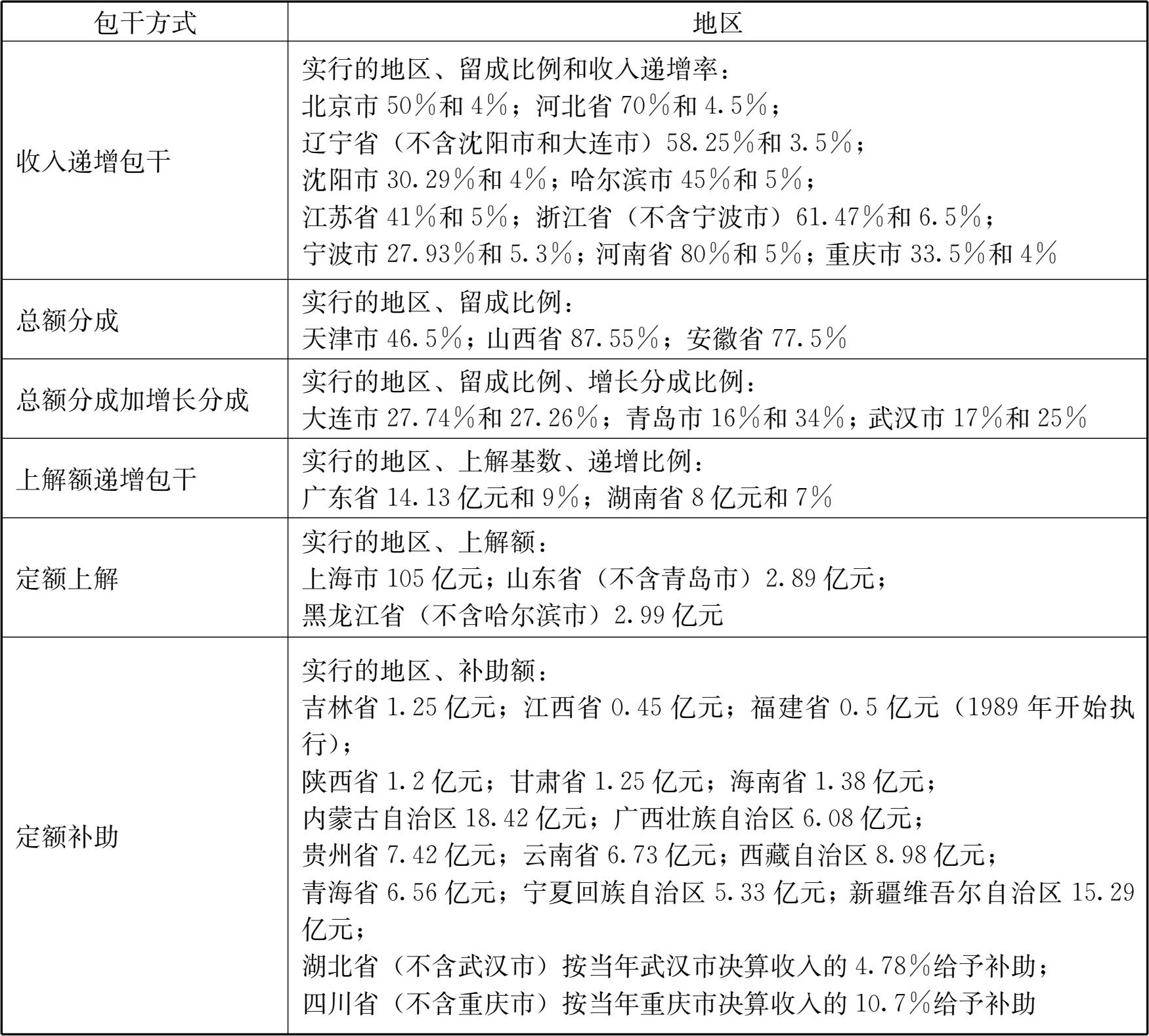 表1—2 1988年财政体制情况