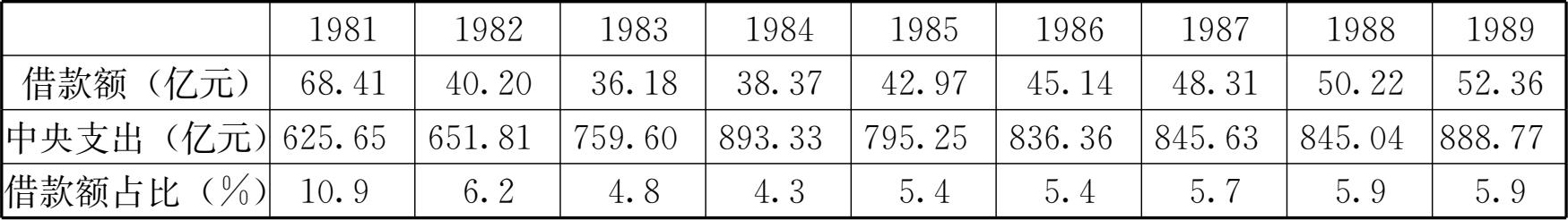 表1—1 1981—1989年间中央向地方借款金额