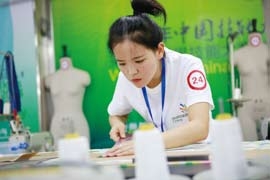 在世界技能大赛时装技术项目中国选拔赛中,北京市工贸技师学院选手包揽前三名