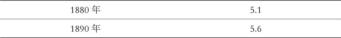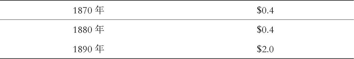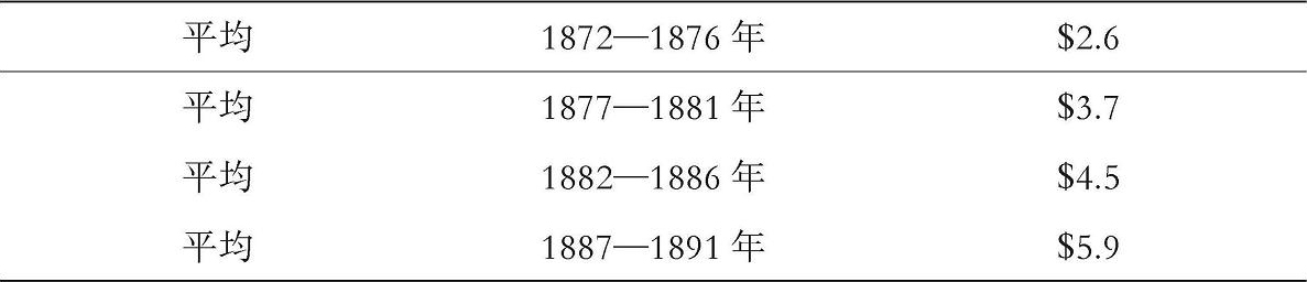 表1-13中每5年的平均数没有其他一些数字那么“精准”,但仍然显示出从19世纪70年代到80年代,总资本形成大致翻了一番。