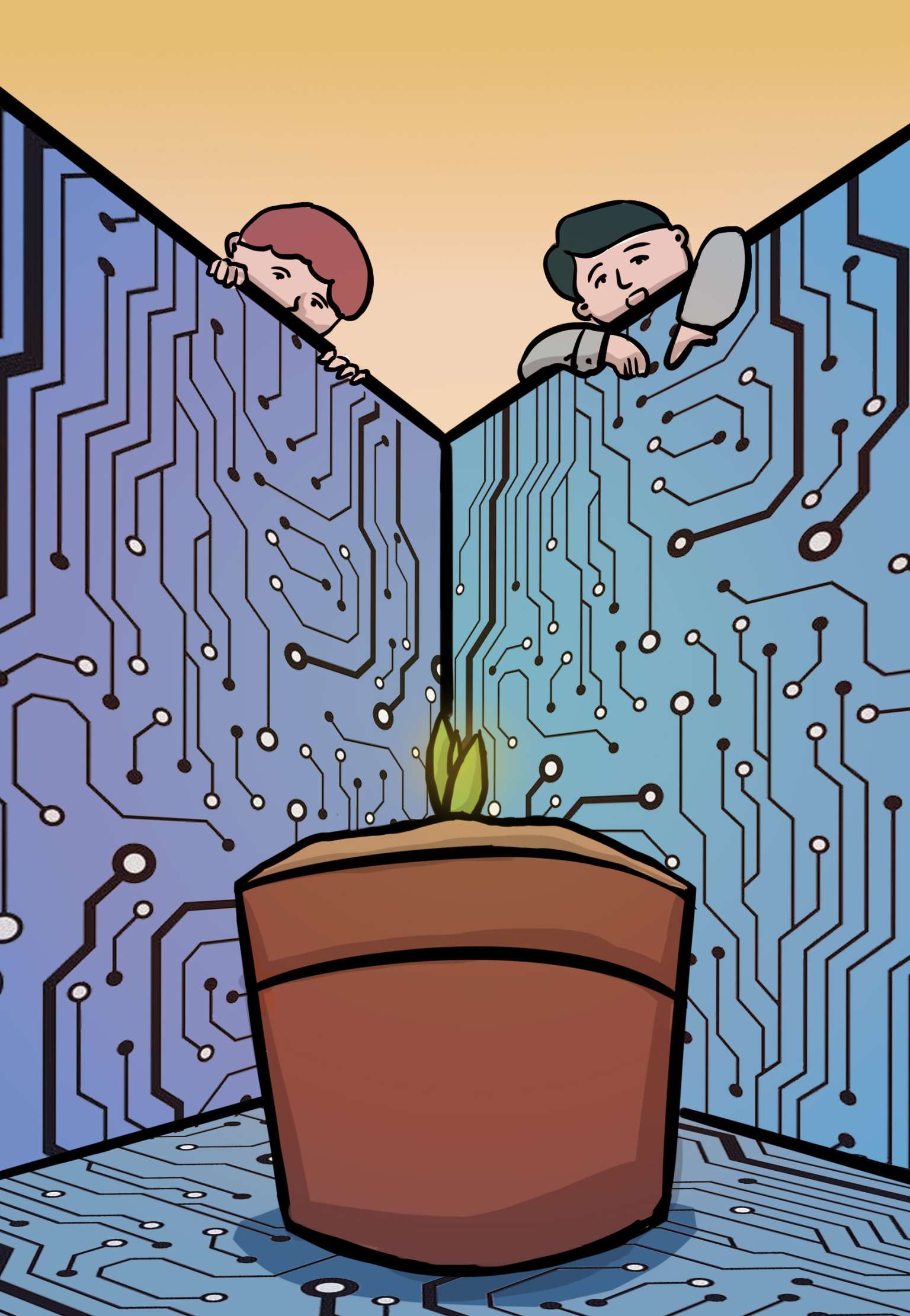 R先生大叫一声,突然睁大了眼睛。在太阳灯强烈的光照下,箱子里的花盆中的泥土似乎在微微地拱起,从那里长出了绿色的嫩芽。(选自《时间箱》)