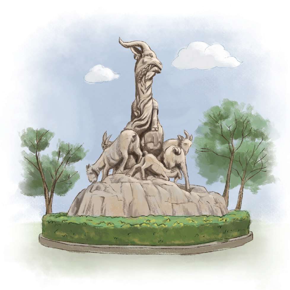 羊城,是广东省省会广州市的别称。相传,古时候的广州连年灾荒,稻田几乎颗粒无收。有一天,天空飘来五朵彩色祥云,上面出现五位骑着仙羊的仙人,仙羊口中衔着稻穗,将优良的稻种赠给广州人,祝福此地永无饥荒。从此,广州成了岭南最富庶的地方之一,而五羊石雕也成为广州的地标。