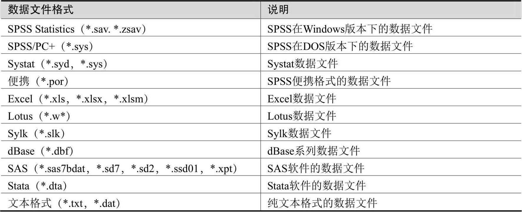 单击对话框中的“文件类型”下拉列表框,在里面可以看到能直接被打开的数据文件格式,包括如表1.1所示的11种类型。