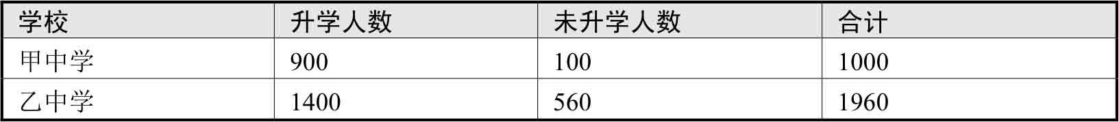 表2.13 甲乙两所中学高三毕业生的升学情况表