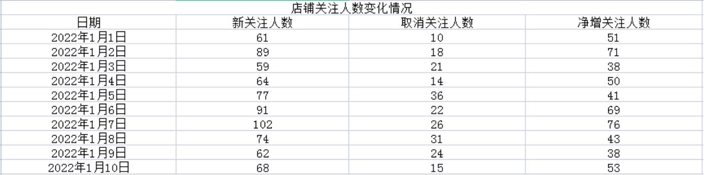 此时,店铺运营者便可以根据自身的经验对商务数据来进行评估。如果该店铺的净增关注人数基本上都超过了40,那么就可以利用直接评判法,判断出2022年1月3日和9日该店铺的运营数据出现了异常。对此,店铺运营者可以对该时间段的运营情况进行分析,寻找导致数据异常的原因。