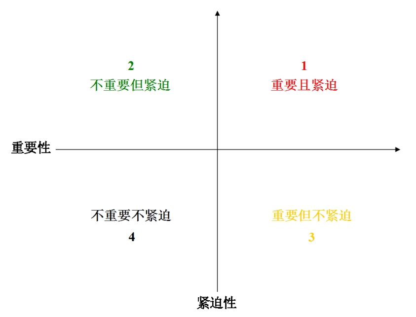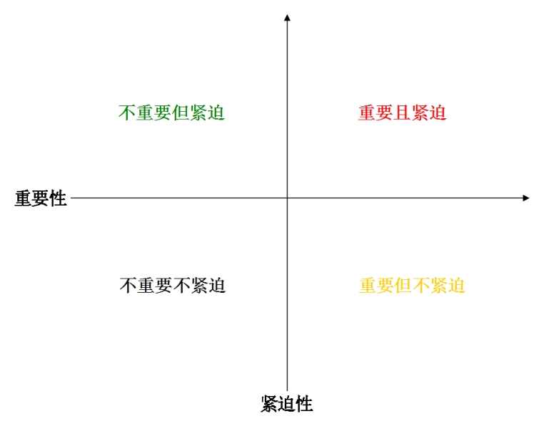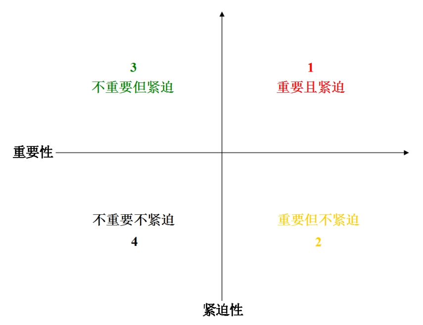 例如,可以根据重要性和急迫性对数据进行分类,然后根据自身情况确定数据分析的先后顺序。具体来说,可以先将重要性和紧迫性分别作为横坐标和纵坐标,将要分析的数据分为重要且紧迫、不重要但紧迫、不重要不紧迫和重要但不紧迫4个类别,如图1-15所示。
