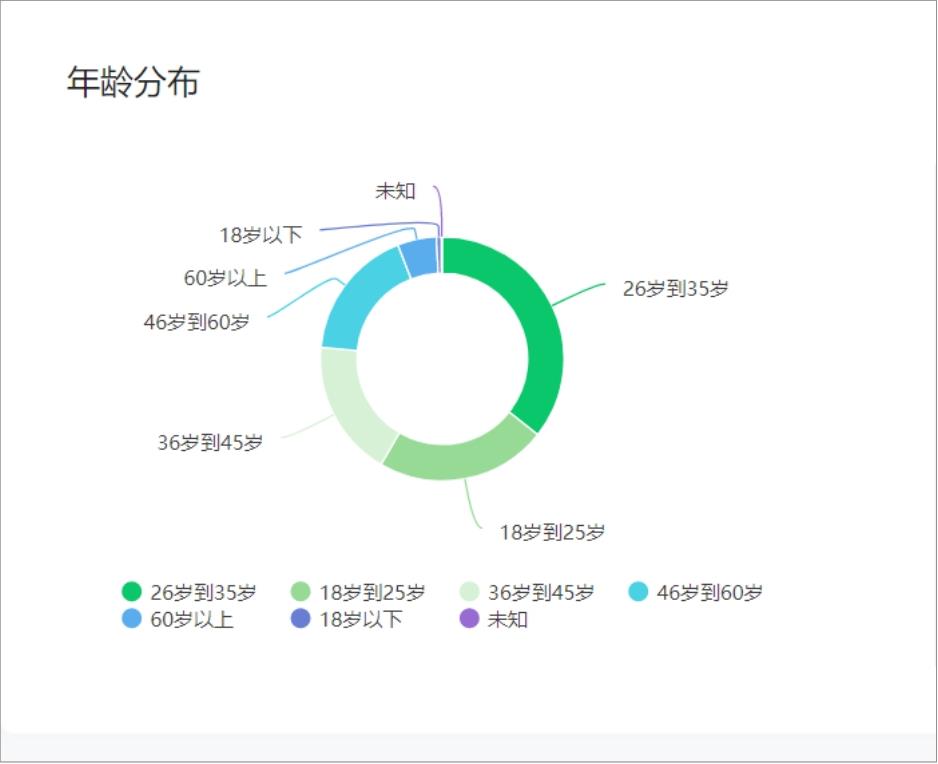 结构分析法,简单地说就是将各部分与总体进行比较,呈现各部分所占比例的一种方法。如图1-13所示为某账号关注人群的年龄分布图,这就是利用结构分析法来对数据进行呈现的。