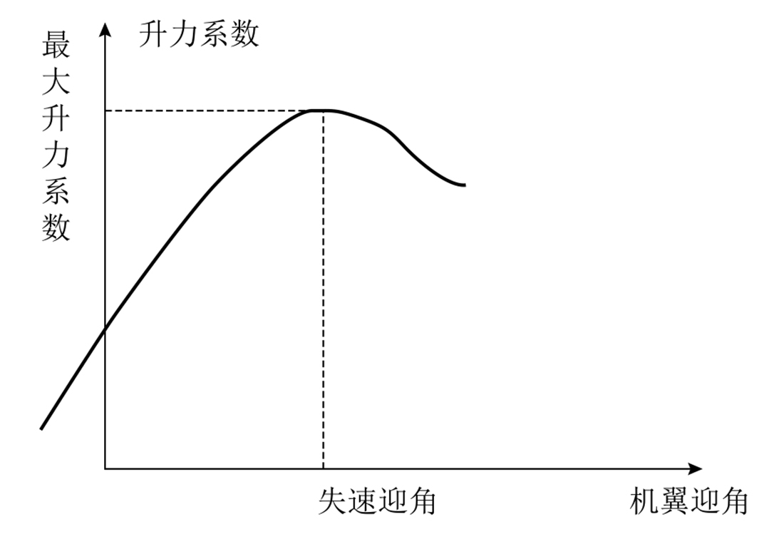 升力和阻力是无人机在空气中的相对运动产生的。相对来流方向与翼弦所夹的角度叫作迎角。在飞行速度等其他条件相同时,得到最大升力的迎角,叫作临界迎角。在小于临界迎角范围内增大迎角,升力增大;超过临界迎角后,再增大迎角,升力反而减小,如图2-19所示。迎角增大,阻力也增大,迎角越大,阻力增加越多;超过临界迎角后,阻力急剧增大。