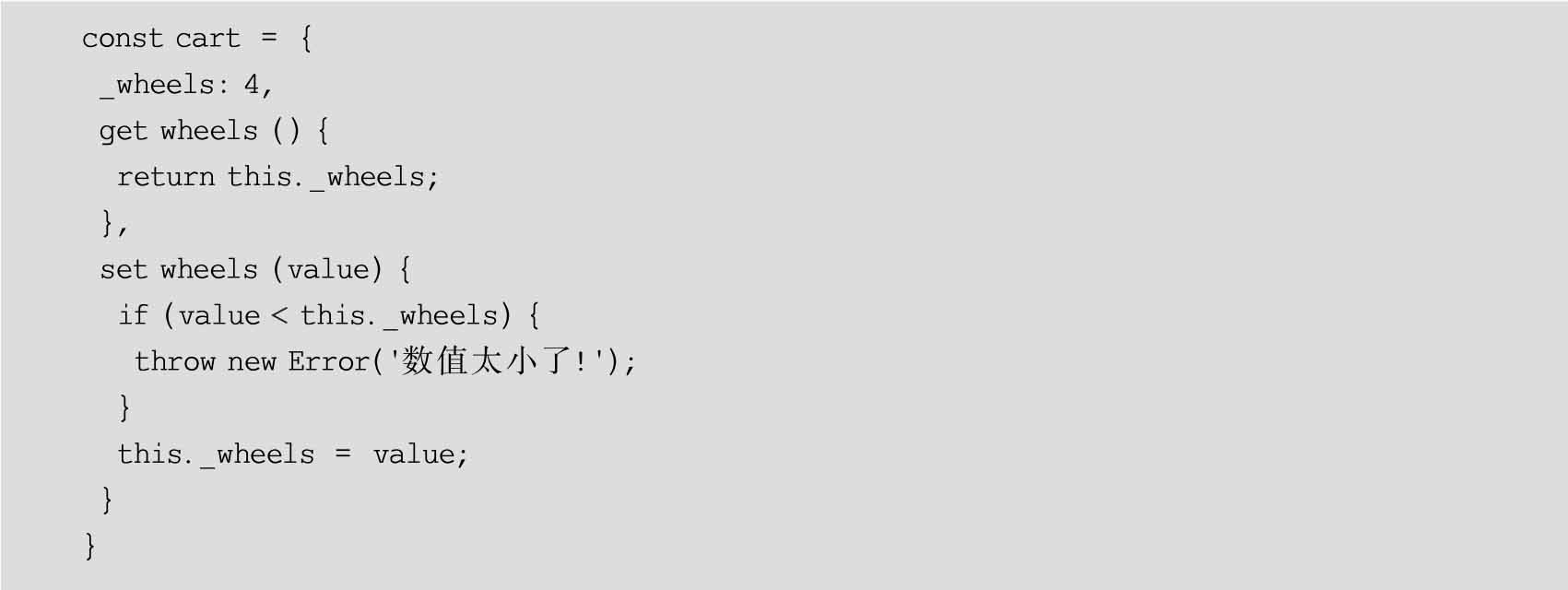 属性的赋值器(setter)和取值器(getter)事实上也采用了这种写法,如代码示例2-68所示。