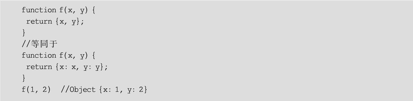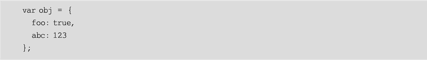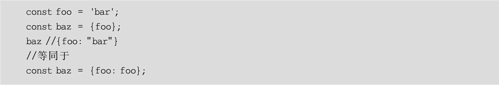在上面的代码中,变量foo直接写在大括号里面。这时,属性名就是变量名,属性值就是变量值。下面是另一个例子,如代码示例2-65所示。