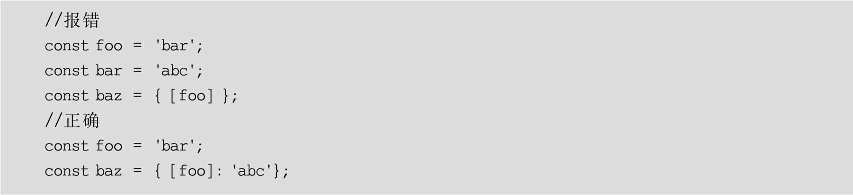 注意,属性名表达式与简洁表示法不能同时使用,否则会报错,如代码示例2-74所示。