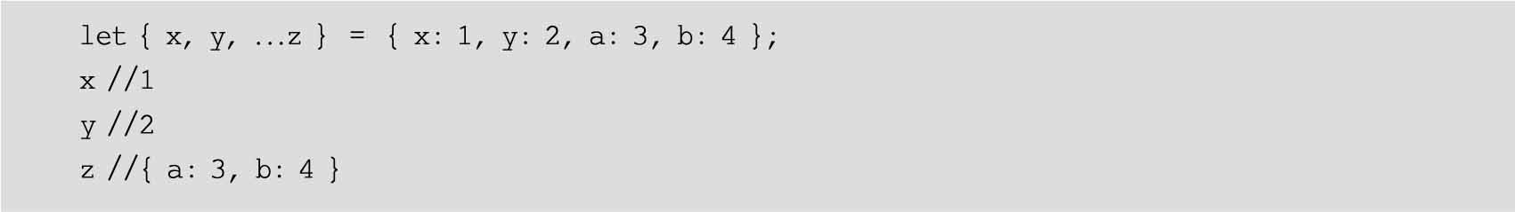 在上面的代码中,变量 z 是解构赋值所在的对象。它获取等号右边的所有尚未读取的键(a和b),将它们连同值一起复制过来。