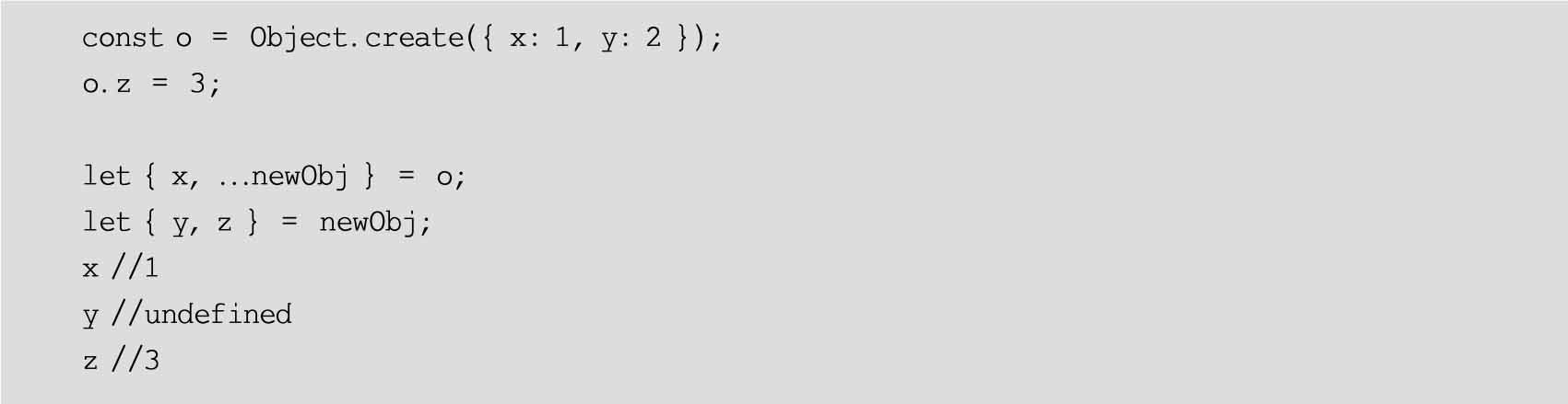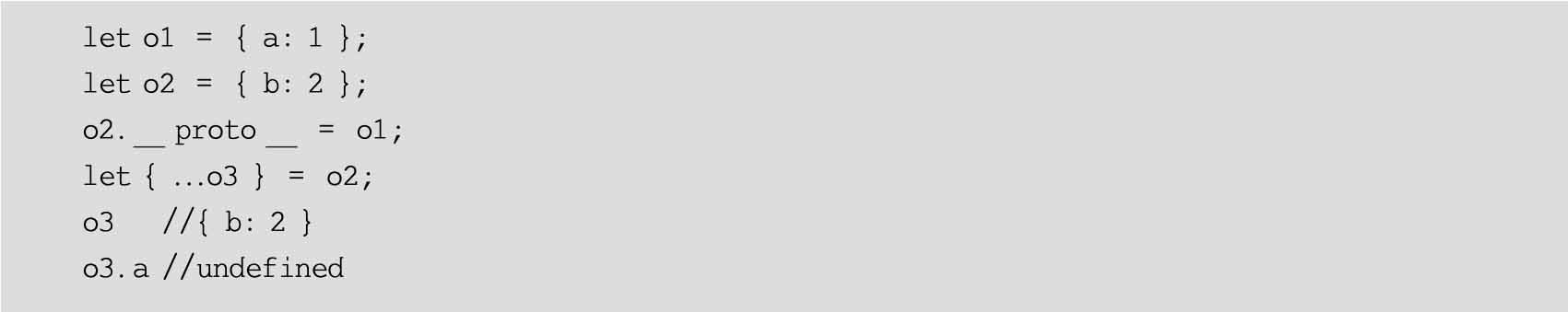 另外,扩展运算符的解构赋值不能复制继承自原型对象的属性,如代码示例2-83所示。
