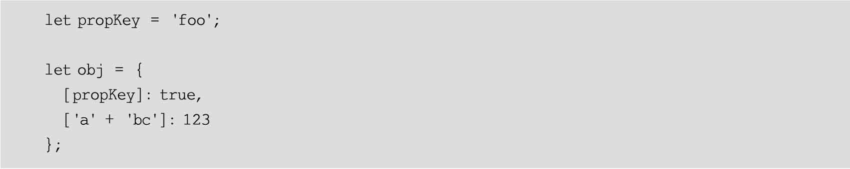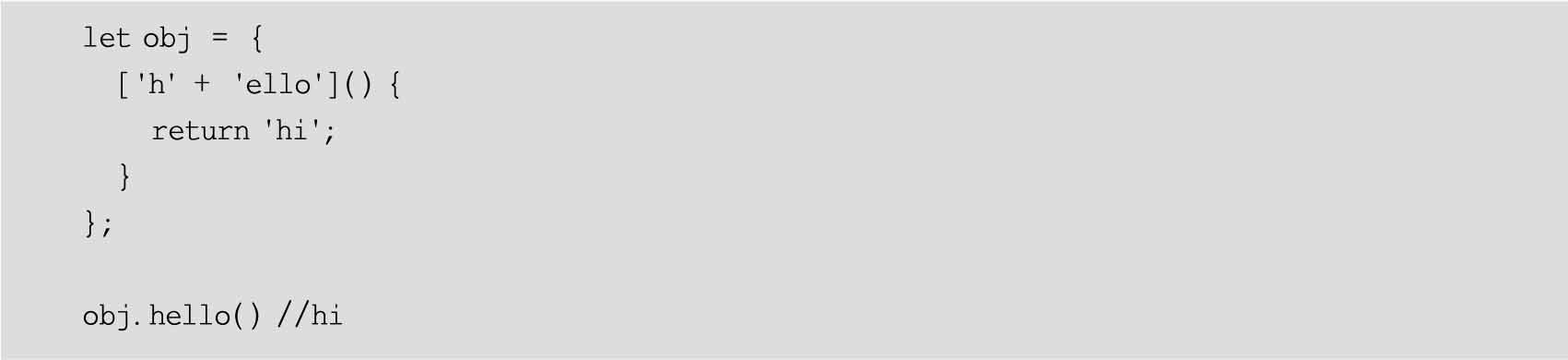 当ES6允许使用字面量定义对象时,用方法二(表达式)作为对象的属性名,即把表达式放在方括号内,如代码示例2-71所示。