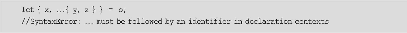 解构赋值必须是最后一个参数,否则会报错,如代码示例2-81所示。