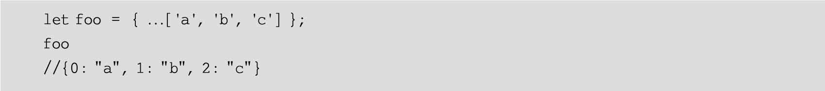 在上面的代码中,扩展运算符后面是整数1,会自动转换为数值的包装对象Number{1}。由于该对象没有自身属性,所以返回一个空对象。