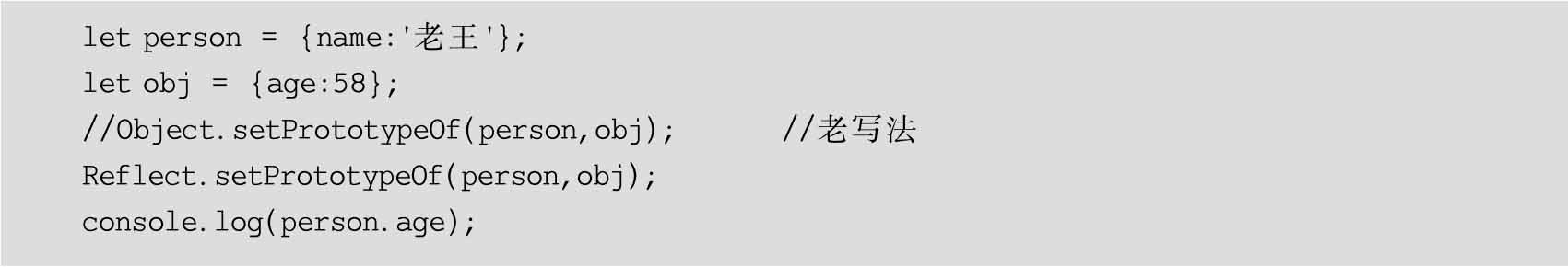 设置proto等价于Object.setPrototypeOf(),不同的是返回一个boolean类型表示是否设置成功,如代码示例2-135所示。