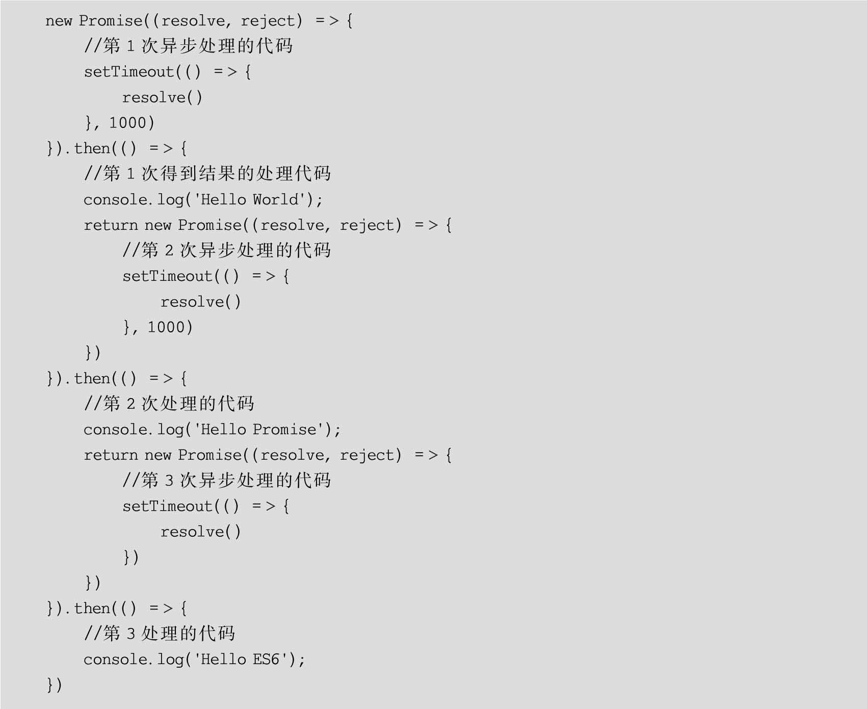 Promise的链式调用的方法尽可能地保证异步任务的扁平化。链式调用如代码示例2-141所示。