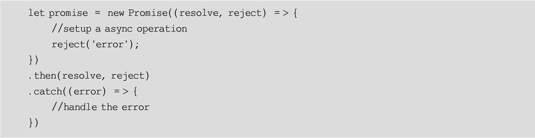 错误机制的API就是reject()方法和.catch()方法,前者负责发起一个错误并往下游传递,后者负责捕获从上游传递下来的错误。可以说,它们共同担当了错误机制的建设,如代码示例2-142所示。