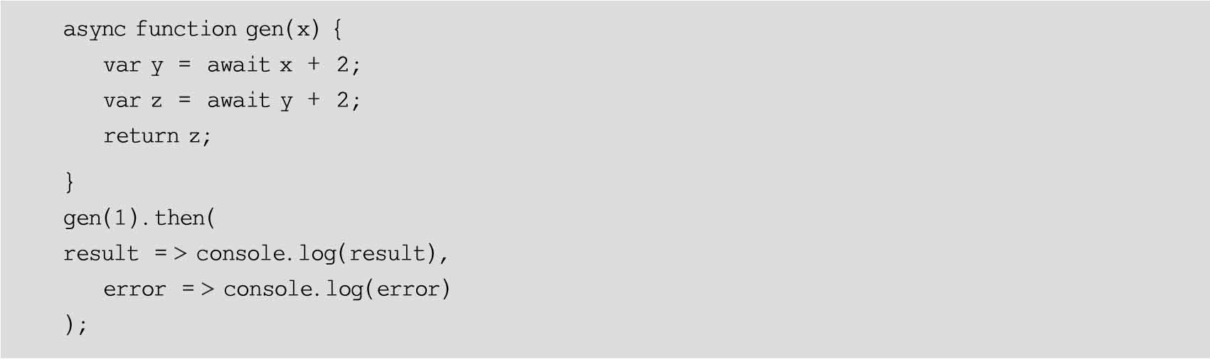 await关键字必须出现在async()函数中,一般来讲await命令后面是一个Promise对象,返回该对象的结果,如果不是Promise对象就直接返回对应的值,如代码示例2-154所示。