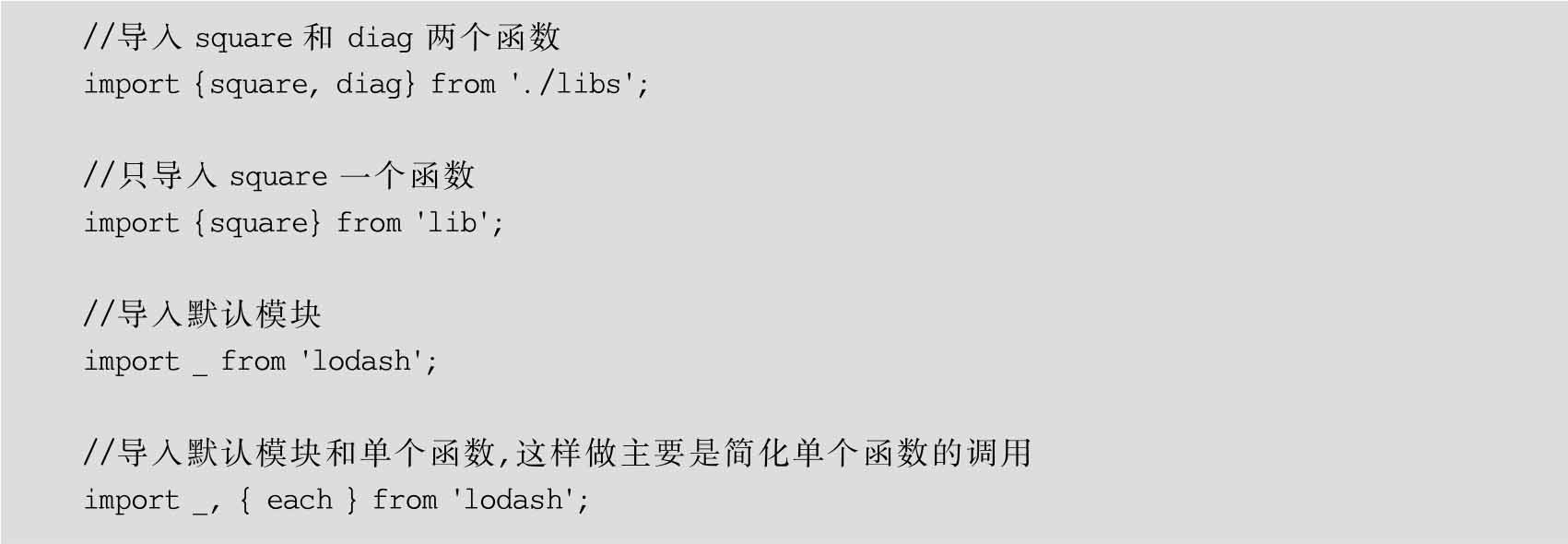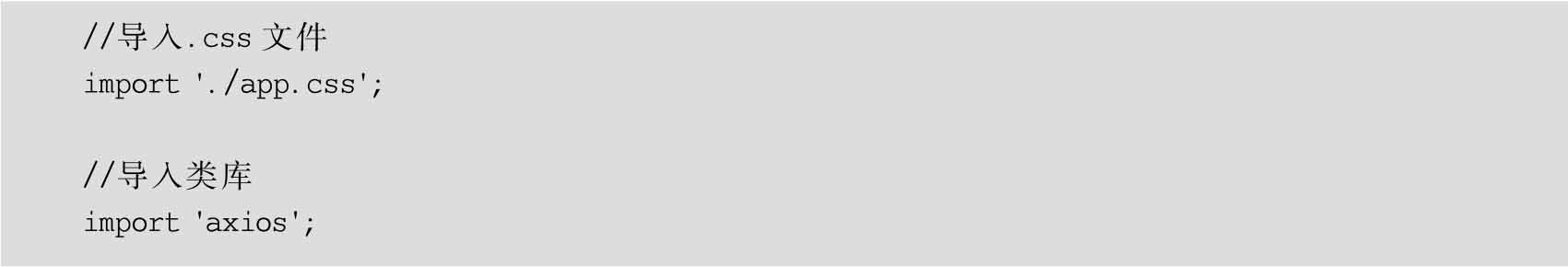有时候只想导入进来,不需要调用,这种情况很常见,例如在用Webpack构建时,经常导入.css文件,或者导入一个类库,如代码示例2-180所示。