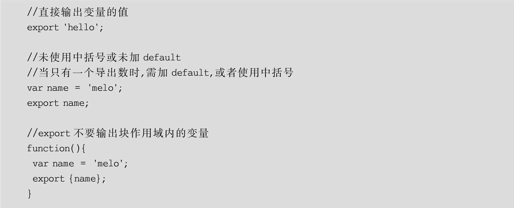 export只支持在最外层静态导出,并且只支持导出变量、函数、类,如下的几种用法都是错误的,如代码示例2-176所示。