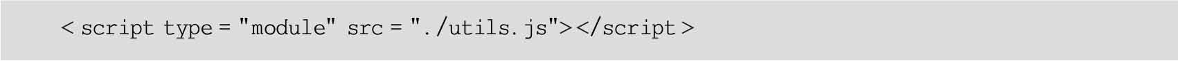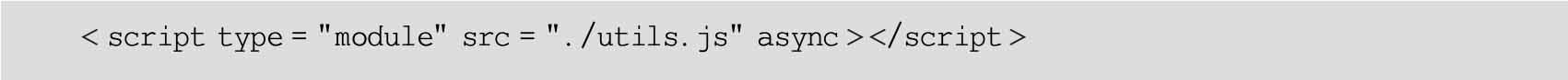 上面的代码用于在网页中插入一个模块utils.js,由于type属性被设为module,所以浏览器才可以识别出是ES 6模块。浏览器对于带有type=module的脚本采用异步加载,不会堵塞浏览器,即等到整个页面渲染完,再执行模块脚本,等同于打开了script标签的defer属性,代码如下: