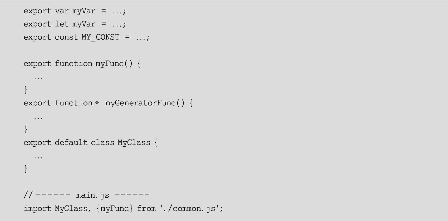 有时候为了避免上层模块导入太多的模块,可能使用底层模块作为中转,直接导出另一个模块的内容,如代码示例2-175所示。