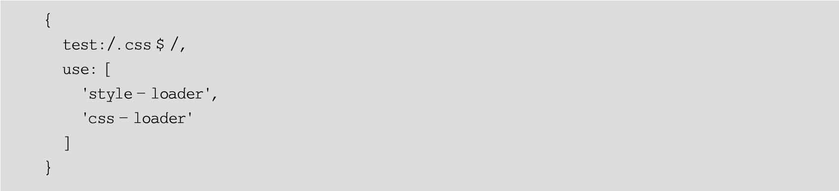 Webpack配置项添加Loader配置,其中由于Loader的执行顺序是从右向左执行的,所以会先进行CSS的样式解析后执行style标签的插入,配置如下: