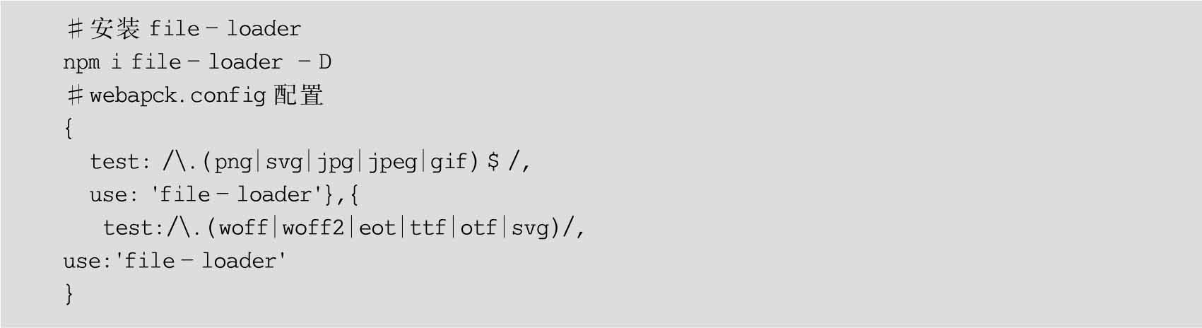 file-loader用于处理文件及字体。安装file-loader依赖并配置,配置如下: