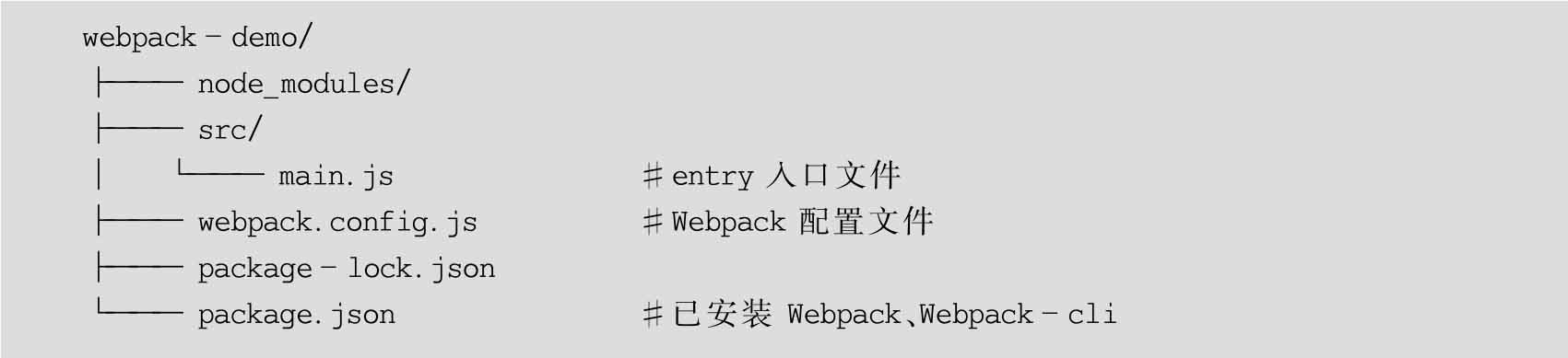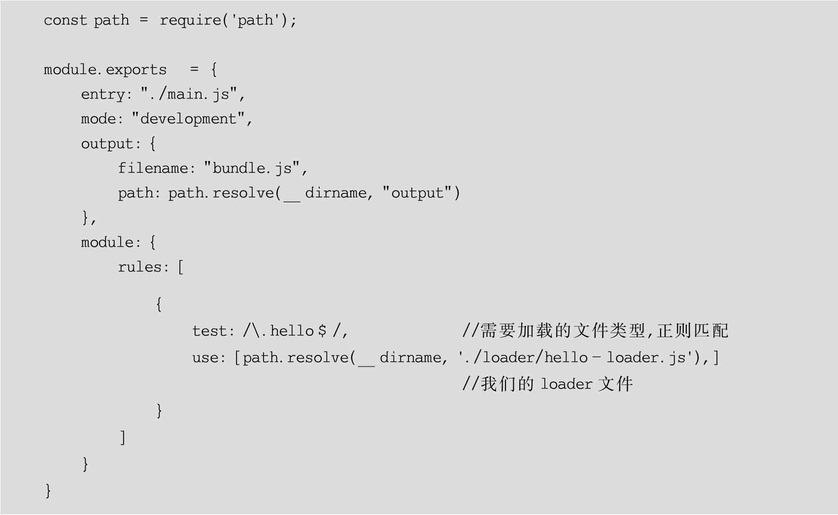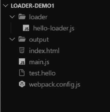 第1步:创建目录loader-demo。创建文件如图3-16所示,这里创建一个test.hello自定义文件,hello-loader需要能够识别该模块,并进行打包。