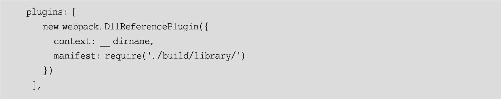 DllReferencePlugin插件在webpack.config.js文件中使用,该插件的作用是把刚刚在webpack.dll.config.js文件中打包生成的dll文件引用到需要的预编译的依赖上来。什么意思呢?就是说在webpack.dll.config.js文件中打包后会生成vendor.dll.js文件和vendormanifest.json文件,vendor.dll.js文件包含所有的第三方库文件,vendor-manifest.json文件会包含所有库代码的一个索引,当在使用webpack.config.js文件打包DllReferencePlugin插件时,会使用该DllReferencePlugin插件读取vendor-manifest.json文件,看一看是否有该第三方库。vendor-manifest.json文件只有一个第三方库的一个映射。