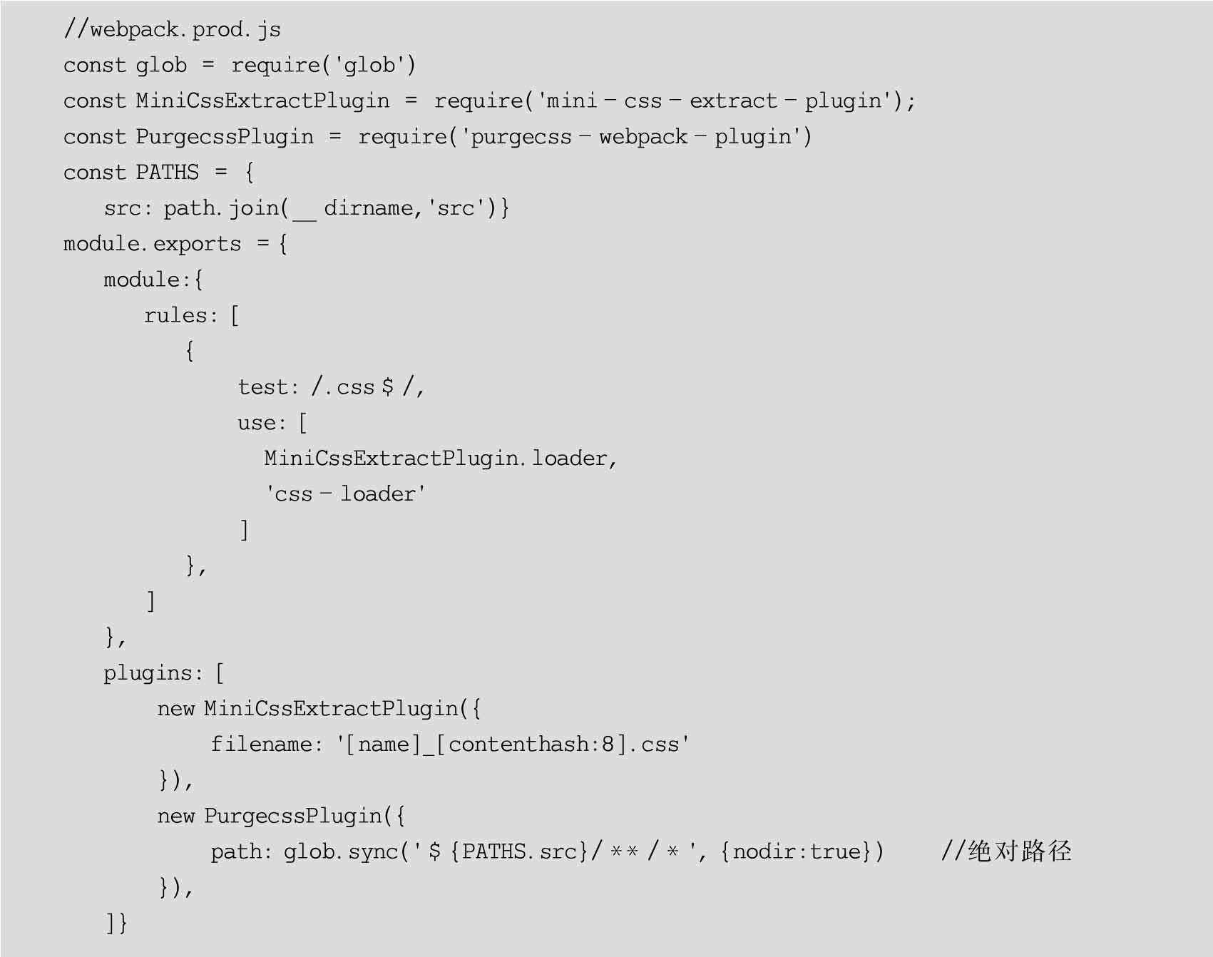 PurgeCSS是一个能够通过字符串对比来决定移除不需要的CSS的工具。PurgeCSS通过分析内容和CSS文件,首先将CSS文件中使用的选择器与内容文件中的选择器进行匹配,然后会从CSS中删除未使用的选择器,从而生成更小的CSS文件。对于PurgeCSS的配置因项目的不同而不同,它不仅可以作为Webpack的插件,还可以作为postcss的插件。一般与glob、glob-all配合使用。