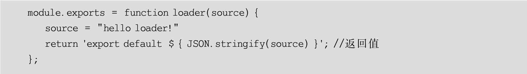 一个简单的Loader通过编写一个简单的JavaScript模块,并将模块导出即可。接收一个source当前源码,并返回新的源码即可。