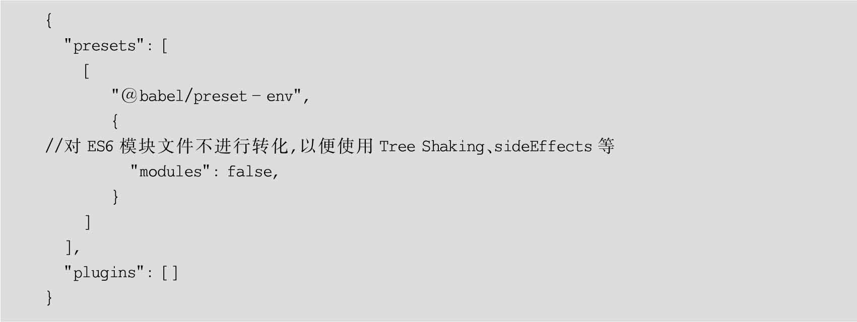 如果要使用Webpack中的一些新特性,例如,Tree Shaking和sideEffects,就需要设置为false,对ES6的模块文件不进行转换,因为这些特性只对ES6模块有效。