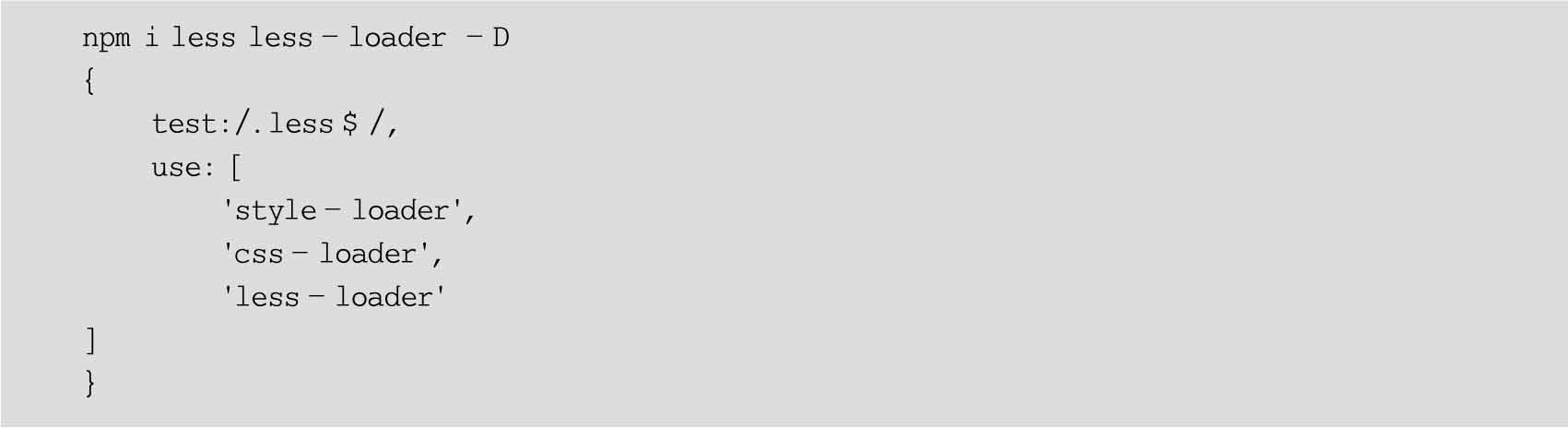 less-loader将.less转换成.css。安装less-loader依赖并添加Webpack配置,配置如下: