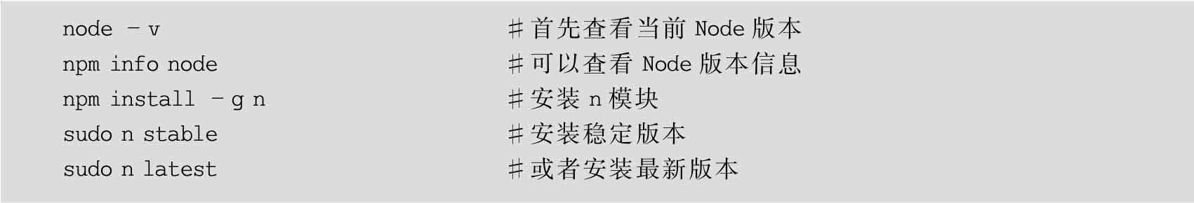 如果想更新Node.js版本,则可以使用n模块,命令如下:
